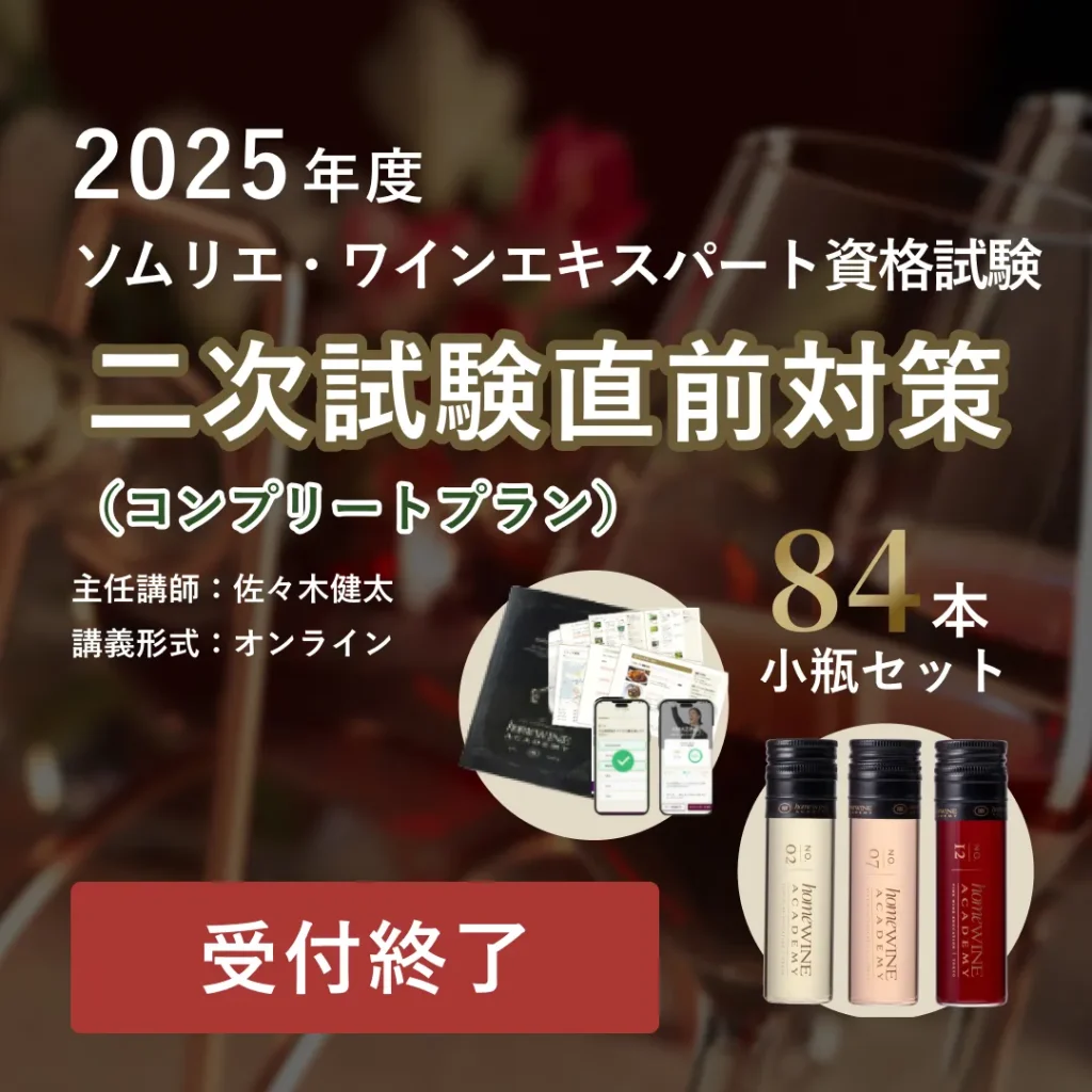ホームワインアカデミーが提供するソムリエ・ワインエキスパート二次試験対策講座は、講師歴7年/累計5000人以上の受験生を合格に導いたソムリエ佐々木健太のメソッドが詰め込まれた試験対策講座です。