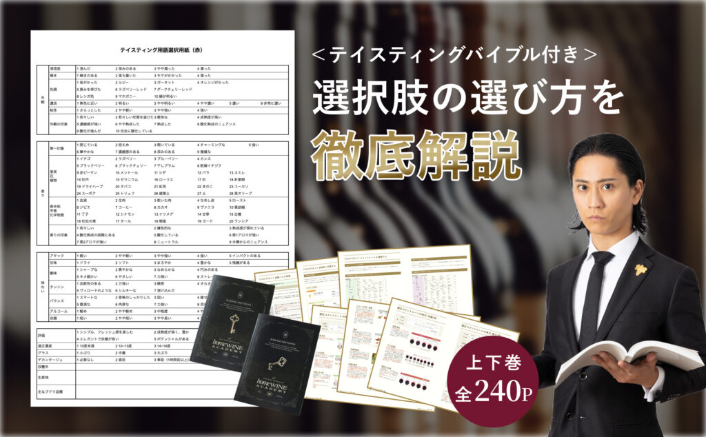 ソムリエ佐々木が今での実践している分析方法を伝授し、ブドウ品種や生産地を推測できるレベルまで引き上げていきます。