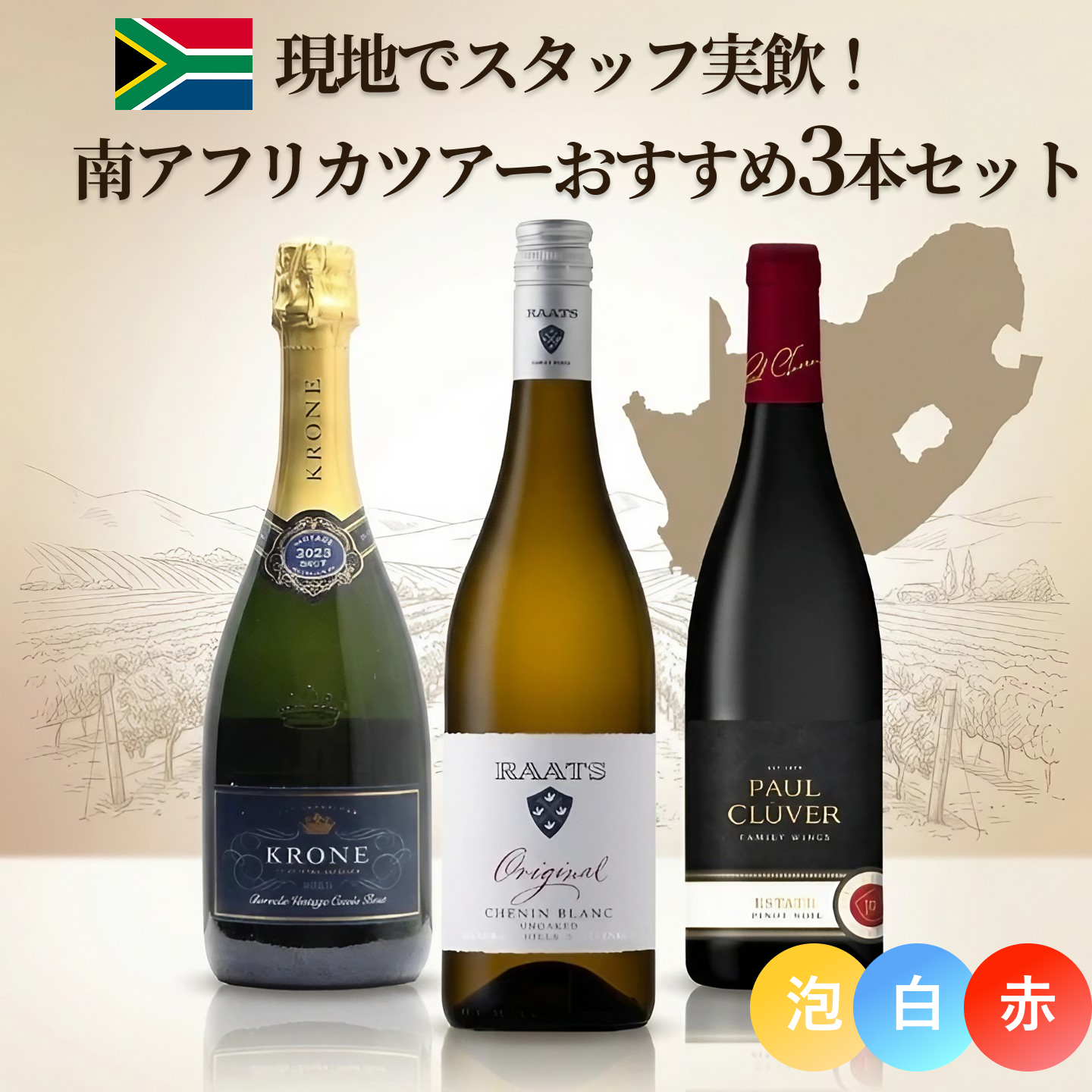 南アフリカ 2026年南アフリカツアーでスタッフが現地試飲して厳選した3本セット。シャンパーニュ製法の本格スパークリング「クローヌ」、シュナン・ブランの王道「ラーツ」、エルギン産エレガントな「ポールクルーバー」ピノノワール。スタッフ渾身の泡・白・赤セットです!詳細を見る