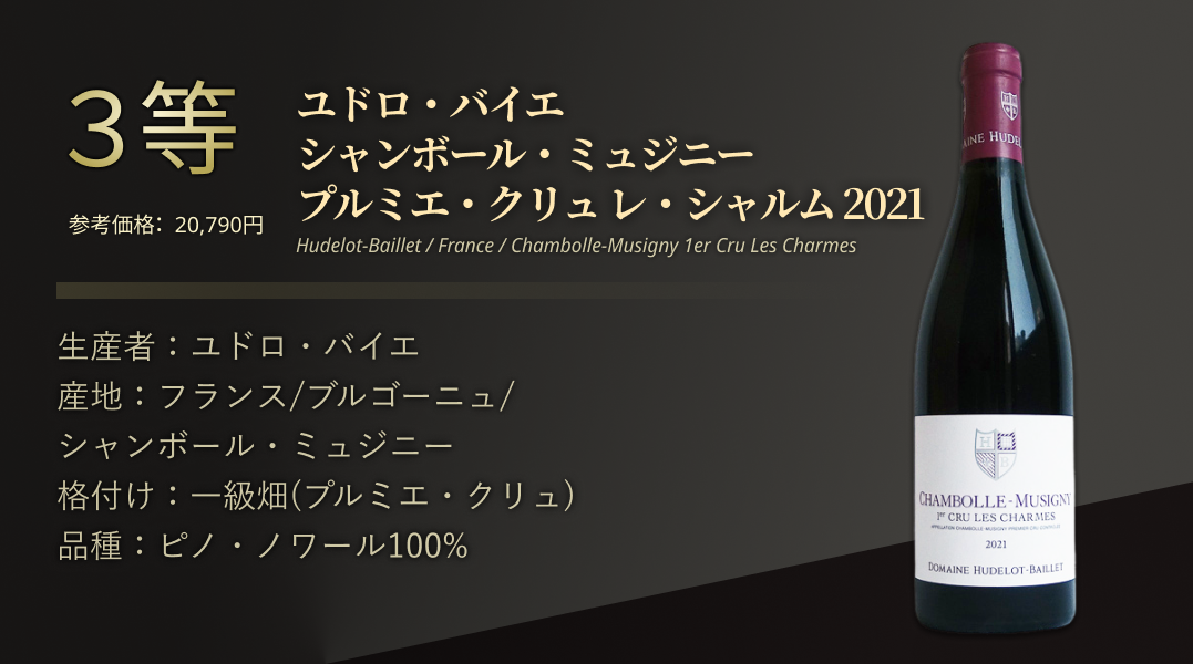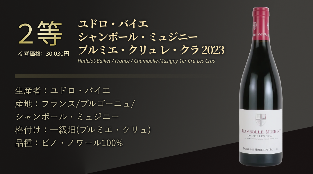 当選された方には、シャンボール・ミュジニーという村の魅力をまっすぐに感じていただける、まさに“入り口にして本命”の1本です。