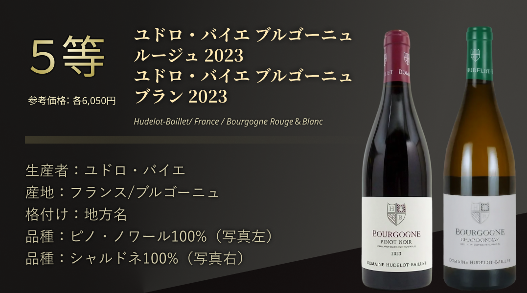 5等「ユドロ・バイエ ブルゴーニュ ルージュ2023」につきましては、単品購入も承っております。